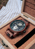 La combinazione di legno tiger wood e acciaio inossidabile offre un equilibrio perfetto tra naturalezza e robustezza. La cassa da 44 mm di diametro e 11,5 mm di spessore garantisce presenza al polso senza compromettere il comfort.